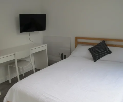 Individually keyed rooms with private ensuite, double bed, and study space for a comfortable and quiet stay.